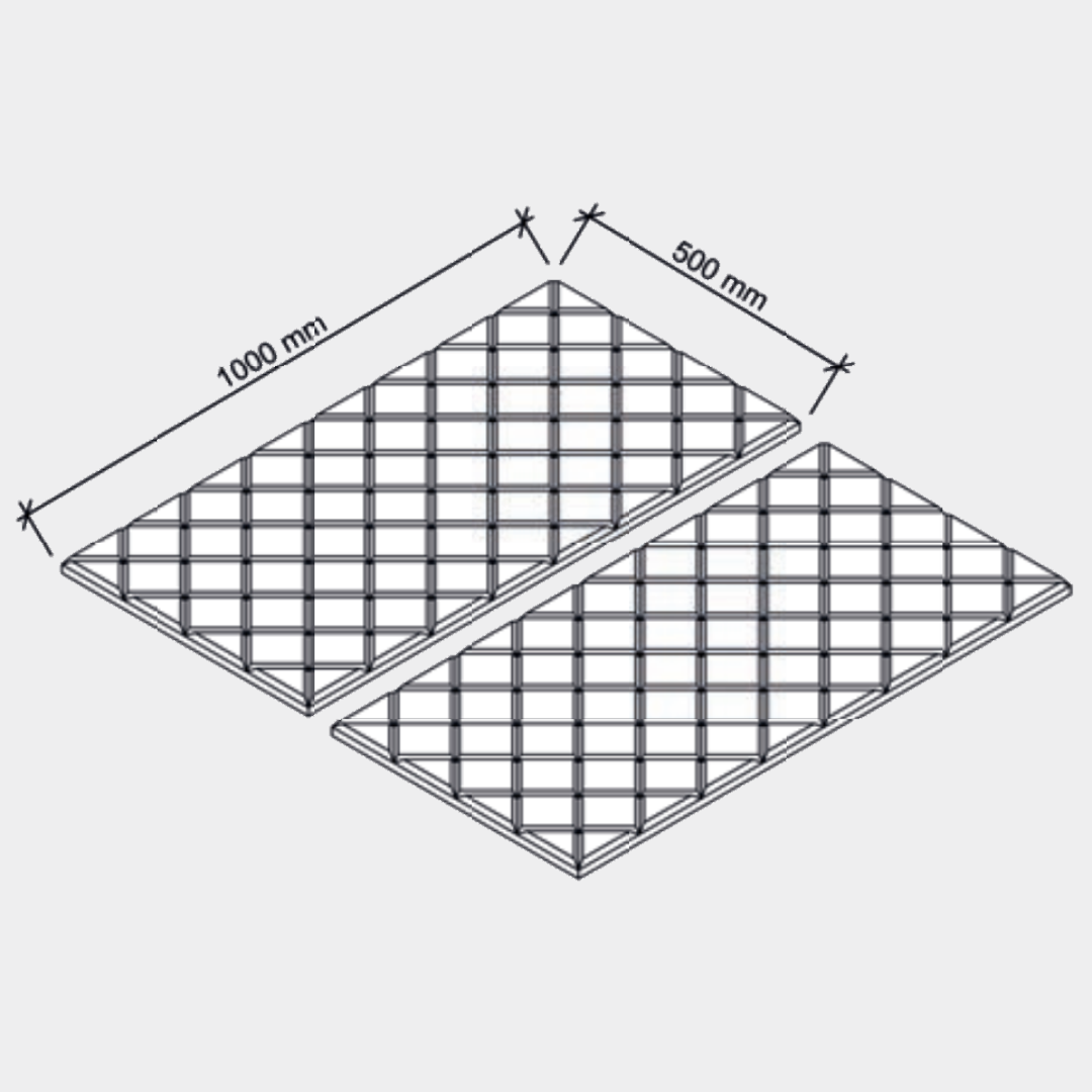 - Design: Gekreuzte, 45° gedrehte Quadratmuster