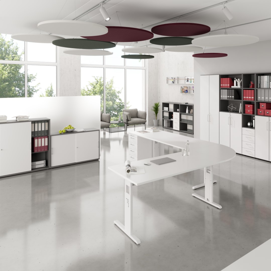 Diese runden Akustik-Deckensegel verbinden funktionalen Schallschutz mit stilvollem Design – die ideale Lösung für professionelle und private Innenräume mit hohem Anspruch an Akustik und Ästhetik.