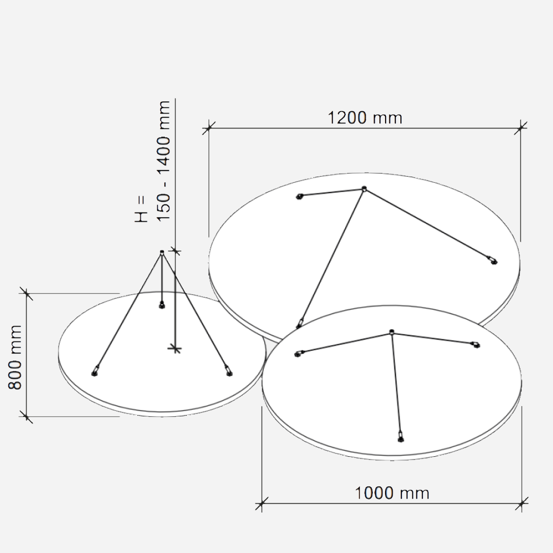 - Set aus 3 runden Deckensegeln: Ø 120 / 100 / 80 cm