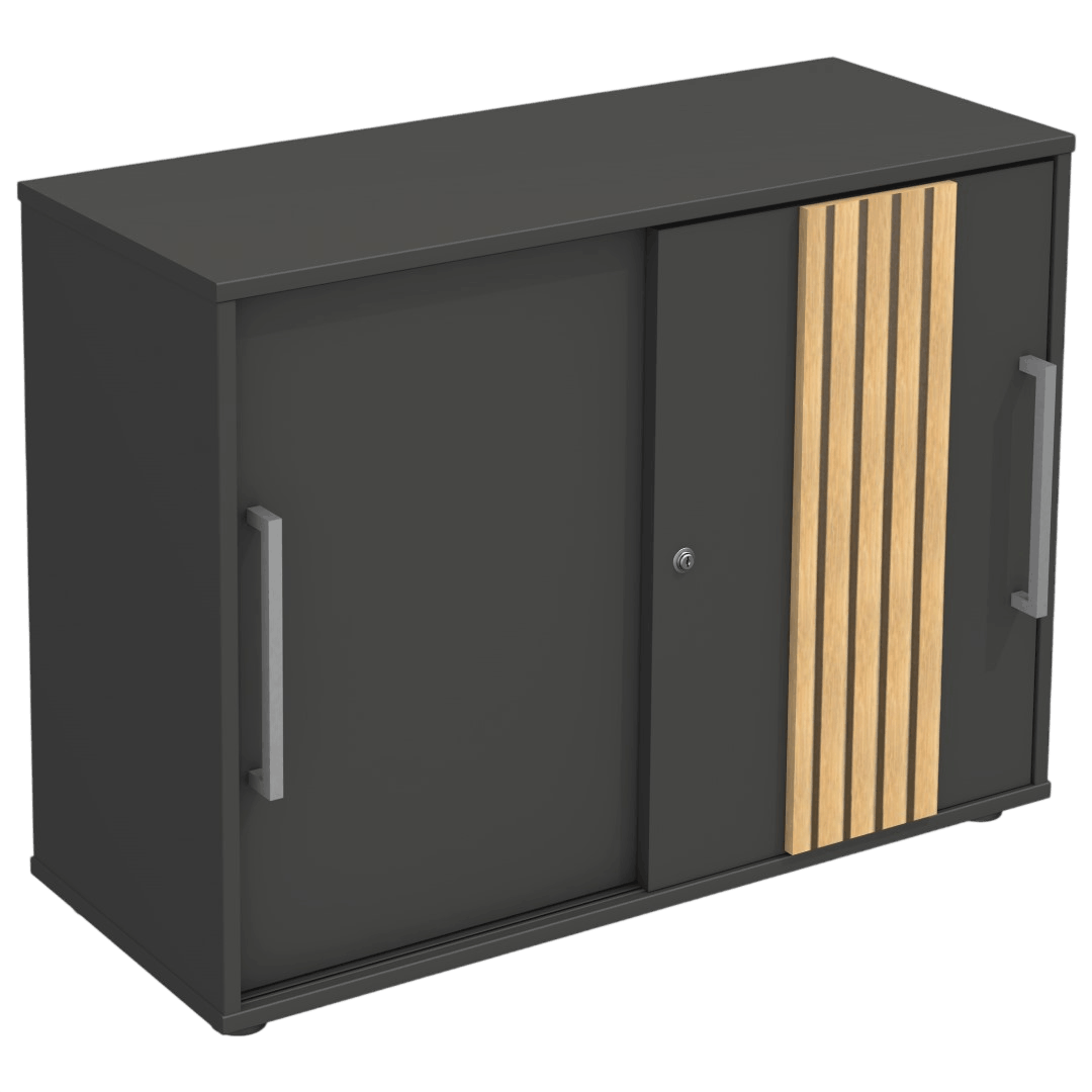 Sideboard mit Akustik-Schiebetüren – Breite 100 cm, Anthrazit- Eiche hell