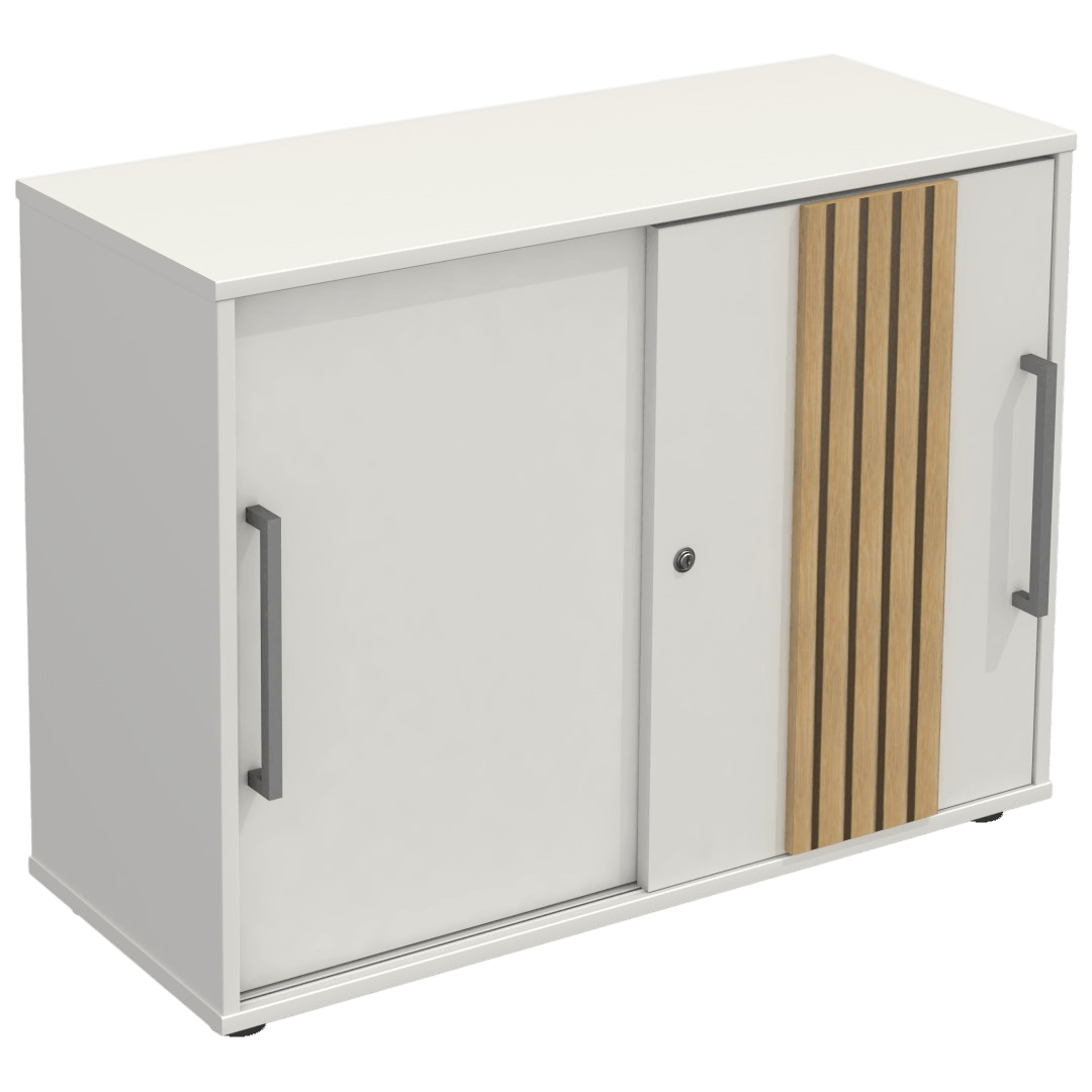 Sideboard mit Akustik-Schiebetüren – Breite 100 cm, Weiß – Eiche hell