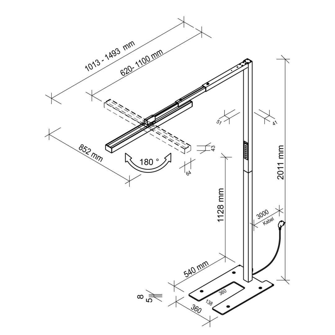 Mit ihren Maßen B 85,2 cm, H 201,1 cm, T 62 cm fügt sich die Leuchte harmonisch in jeden modernen Innenraum ein und setzt gleichzeitig ein stilvolles, funktionales Designstatement.